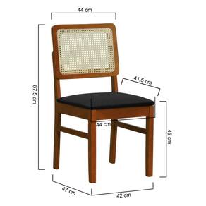 Cadeira Madeira Maciça Lyon Encosto Telinha Natural - Amêndoa Assento Estofado Linho Preto Textura -