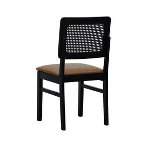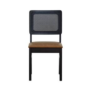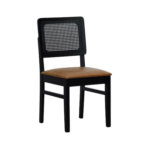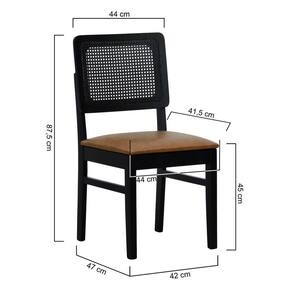 Cadeira Madeira Maciça Lyon Encosto Telinha - Preto Assento Estofado Corano Marrom Mescla -