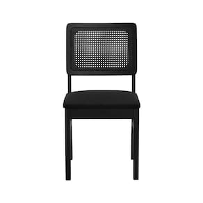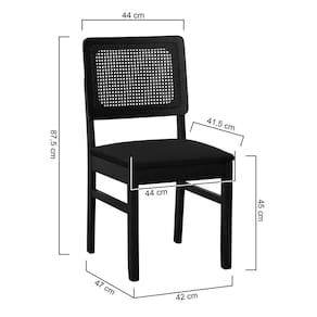 Cadeira Madeira Maciça Lyon Encosto Telinha - Preto Assento Estofado Linho Preto Textura -