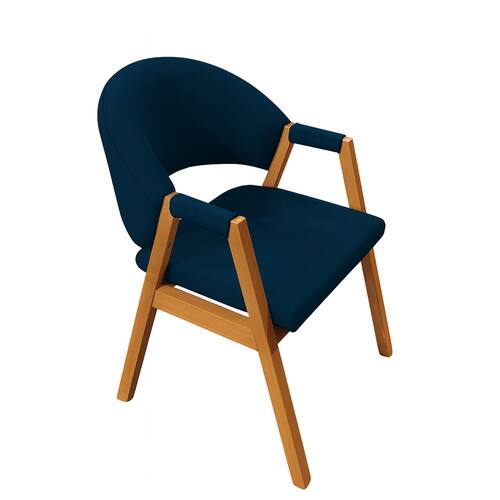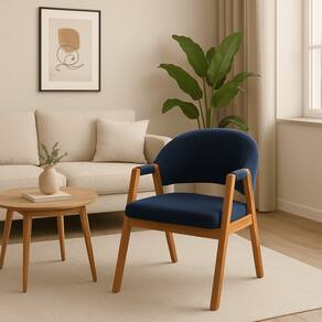 O modelo conta com assento amplo e encosto curvado, características que garantem mais conforto e ergonomia para longos períodos de uso. Seus pés em madeira tratados reforçam a resistência da peça e completam o design com charme e modernidade.