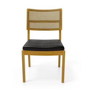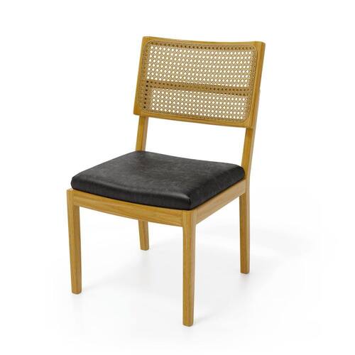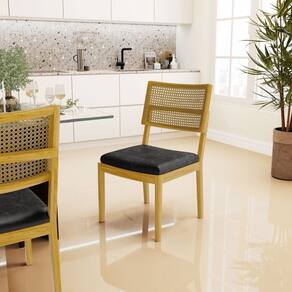 MadeiraCadeira Milena Madeira Maciça Assento Estofado Encosto De Tela Palha Sextavada Courino Preto 503 - Cadeira Em Madeira Maciça Encosto De Tela Palha Sextavada