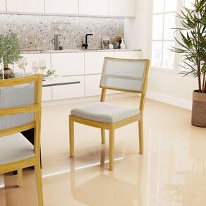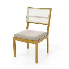 Cadeira Milena Madeira Maciça Assento Estofado Encosto De Tela Sintética Veludo Bege 102 - Cadeira Em Madeira Maciça Encosto De Tela Sintética
