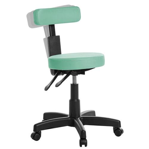 Cadeira Mocho Giratória com Back Ideal para ambientes como: Clínicas Odontológicas, Estética, Médicas, Fisioterapia, etc. Especificações: Revestimento: Cor do Revestimento: Turquesa. Tipo de Revestimento: Viena. Malha: 67% Poliéster e 33% Algodão; Material: Vinil e material sintético; Composição Química: 13,8% de Malha e 86,2% Resina de Vinila Plastificada; Espessura aproximada: 0,90 mm +/-11% ; Detalhamento do Assento: Espuma Injetada Redonda; Diâmetro 380 mm X Espessura 80 mm; Detalhamento do Encosto: Espuma Injetada de Poliuretano; Largura 380 mm X Espessura 30 mm X Altura 110 mm; Componentes da Base Giratória: Flange em aço modelo Back Para Inclinação e Regulagem do encosto ; Estrela em Aço com Capa Preta; Rodízios em Nylon; Pistão a gás Preto, permite regulagem da altura; Base possui raio externo de 285 mm, raio útil de 282,5 mm; Dimensões e Peso montado: Altura do assento referente ao piso, miníma 420 mm, máxima 530 mm; Peso aproximado: 11 kg; Peso suportado: 110 kg Uniformemente Distribuídos; Dimensões da Caixa: Largura 590 mm X Profundidade 580 mm X Altura 200 mm; Componentes Inclusos: 01 Assento Mocho; 01 Encosto Mocho; 01 Suporte de Encosto com Capa Preto; 01 Mecanismo Preto; 01 Pistão com Capa Preta; 01 Estrela em Aço com Capa Preta; 05 Rodízios Nylon Preto; Parafusos para montagem ¼ Philips; Manual de Montagem. Montagem: A montagem deve ser realizada pelo cliente seguindo o manual de montagem. : 180 dias contra defeitos de fabricação, previstos em Lei; Obs: Pode haver variação de tonalidade referente ao lote do revestimento e a resolução de Computadores e Smartfones. Ean: 7894875663674