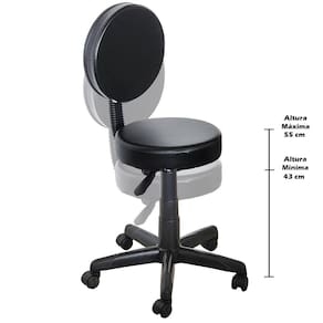 Cadeira Mocho giratório com encosto e regulagem altura Preto Ideal para Consultórios, Clinicas de Estética e Estúdios de tatuagem, além de super confortável, irá decorar seu ambiente. Giratório e com Regulagem de altura por pistão a gás. Estofado em Tecido sintético Estrutura do mocho apenas na cor preta Estofado na cor PretaObs.: Acabamento do Pistão a Gás telescópio pode ou não acompanhar o produto, depende do lote. Marca: For-ty Medidas aproximadas: O diâmetro do assento: 38 centímetros. O diâmetro do encosto: 35 centímetros.Assento espuma injetada 8 cm espessura Encosto espuma 5 cm espessura Este mocho suporta até 120 Kg.Altura do Assento ao final do Encosto: 42 cm.Altura Regulável, sendo que do chão ao assento - mínima 43 cm - máxima 55 cmDimensões do produto montado: 96 máx. E 85 min Alt. X 59 Lar. X 59 Comp. CmDimensões da caixa: 55 Alt. X 56 Lar. X 25 Comp. CmPeso do produto: 8 Kg