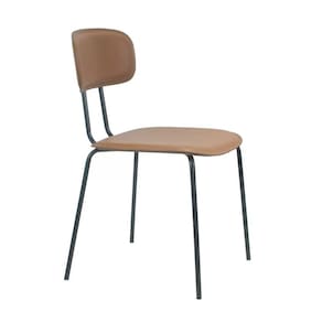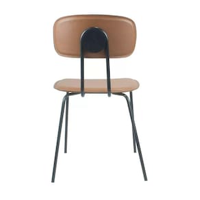 A Cadeira New York - Caramelo tem um estilo industrial, com seus pés em aço preto ela vem trazendo um contraste entre o PU do assento e encosto. O detalhe que possui nas costas, trás um charme a mais na peça.