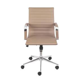 Material: Assento - Couro ecológico Base - Cromada Sistema relax com travamento Medidas (Lx Px A): 54 X 45 x 101 Cores disponíveis: caramelo Diferencial: - Cadeira de cromo com sistema de encaixe na base que dispensa detalhes em nylon preta, deixando a ela com aspecto de cadeira de alumínio (foto ao lado) - Sistema relax com travamento em 3 posições - Rodas em PU que nao danificam o solo - Capas metalicas na roda para uniformidade estética (foto ao lado) Indicação: Uso interno - Residencial/corporativo