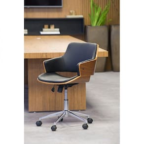 Seu escritório merece uma cadeira linda, confortável, com curvas de design e que garante muita praticidade para seu dia a dia. A Cadeira Débora é ideal para ambientar escritórios, home office, salas de reunião e outros ambientes de leitura e estudo. Cadeira office com assento em madeira compensada, revestido em poliuretano (PU) com preenchimento em espuma. Mecanismo com funções up-down (levanta e baixa) e relax. Braços fixos. Base cromada com 320mm diâmetro, em formato estrela, com rodízios. Encosto baixo fixo. Acabamento da Estrutura: Verniz Almofada do assento: Fixa Altura do assento até o chão: 54 cm Ambiente Principal: Escritório Apoio para Braços Estofado: Sim Complexidade da Montagem: Baixa: pode ser montado por uma pessoa sozinha Cor: Preto Cor do Produto: Preto Dobrável: Não Enchimento do Assento: Espuma D-24 Enchimento do Encosto: Espuma D-24 Escala de Brilho: Fosco Estrutura do Assento: Madeira compensada - nogueira Estrutura do Encosto: Madeira compensada - nogueira Giratória: Sim Informações Complementares: Cadeira home-office com assento em madeira compensada, revestido em poliuretano (PU) com preenchimento em espuma. Mecanismo com funções up-down (levanta e baixa) e relax. Ajuste de altura, mínimo 82cm e máximo 92cm. Braços fixos. Base cromada com 320mm di Itens Inclusos: 1 Cadeira, material para montagem (se necessário) e Manual de Instruções. Linha ou Coleção: Office Manual de Montagem e Instalação: https://cdn2.madeiramadeira.com.br/atributo/rivatti/856851-manual-d-bora.pdf Material da Base: Aço Cromado Necessita Montagem: Sim Origem do Produto: Importado Peso: 11,5 kg Possui Apoio para Braços: Sim Possui Apoio Para os Pés: Não Possui Rodízio: Sim Recomendações de Uso, Manutenção e Limpeza: Uso interno. Não expor ao sol ou umidade. Não exceder a capacidade de peso. Limpar com pano macio umedecido em solução de água e sabão neutro e secar em seguida. Não utilizar produtos químicos ou abrasivos. Revestimento do Assento: Poliuretano Revestimento do Encosto: Poliuretano Rodízio com Trava: Não Sistema de Montagem: Encaixe e parafusos Suporta Até (kg): 120 kg Tipo de Assento: Regulável Tipo de Encosto: Fixo Tipo de Madeira Maciça: Nogueira