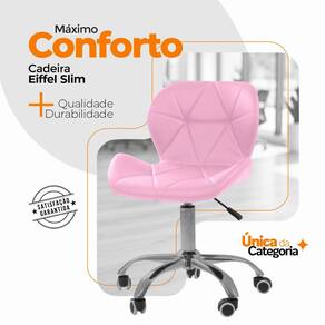 Cuidados e Manutenção Limpe com pano úmido e detergente neutro, evitando produtos abrasivos que possam danificar o revestimento. Evite exposição direta ao sol para preservar a cor e o brilho do couro sintético e da base cromada. Conforto e Estilo para o Seu Dia a Dia! A Cadeira Office Eiffel Slim Base Giratória é a combinação perfeita entre design contemporâneo e praticidade. Ideal para quem valoriza ambientes elegantes e funcionais, ela oferece conforto, resistência e versatilidade para qualquer espaço. Ean: 7807838163982