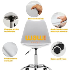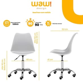 A Cadeira Saarinen é a escolha certa para quem busca conforto e elegância em ambientes como escritórios, mesas de estudo, home office e muito mais. A praticidade também é um destaque com uma altura total mínima de 80cm e máxima de 94cm, largura de 47cm e uma profundidade de 54cm, além disso este modelo possui altura ajustável, com um mínimo de 46cm chegando ao máximo de 60cm do assento ao chão, garantindo uma regulagem personalizada de acordo com a necessidade de cada ambiente ou pessoa. A base giratória com rodízios facilita a mobilidade e proporciona maior agilidade no dia a dia, além disso tem uma boa resistência, com capacidade de suportar até 120kg.