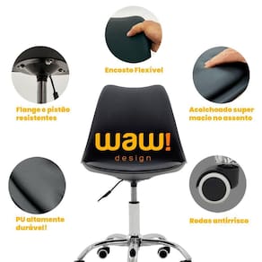 A Cadeira Saarinen é a escolha certa para quem busca conforto e elegância em ambientes como escritórios, mesas de estudo, home office e muito mais. A praticidade também é um destaque com uma altura total mínima de 80cm e máxima de 94cm, largura de 47cm e uma profundidade de 54cm, além disso este modelo possui altura ajustável, com um mínimo de 46cm chegando ao máximo de 60cm do assento ao chão, garantindo uma regulagem personalizada de acordo com a necessidade de cada ambiente ou pessoa. A base giratória com rodízios facilita a mobilidade e proporciona maior agilidade no dia a dia, além disso tem uma boa resistência, com capacidade de suportar até 120kg.
