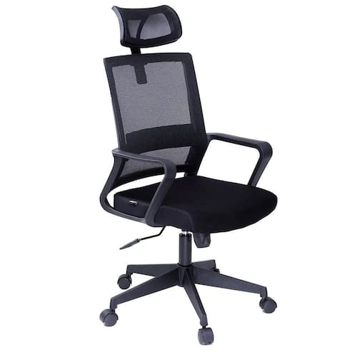 Cadeira Office Maxprint. Design moderno, ideal para uso em escritório ou home office. Possui superfície em malha, encosto telado, apoio de braço fixo em plástico e apoio inclinável para a cabeça, dando o conforto necessário. Pistão classe 3, mecanismo borboleta. Suporta até 120kg.