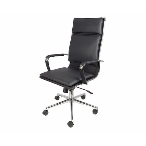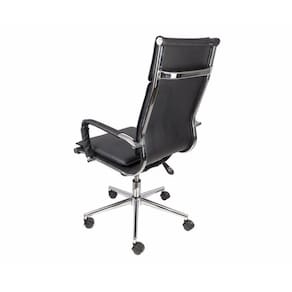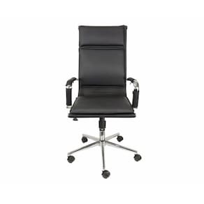Cadeira Office Soft Alta Preta possui Assento em PU com estrutura cromada. Sistema relax com travamento. Base de encaixe metalizado. Rodas em PU que não danificam o piso. Medidas: 1,18x57x58cm Chão ao assento: 42 a 49cm / Chão ao braço: 63 a 70 cm
