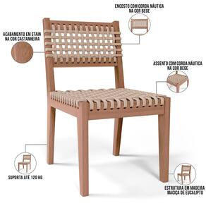 A Cadeira Madeira Maciça Para Cozinha Corda Náutica Giardino G01 Castanheira Bege, da Lyam Decor, combina design moderno com durabilidade e funcionalidade. Com sua intricada tecelagem de corda náutica e estrutura maciça de madeira de eucalipto, essa cadeira de madeira é perfeita para uso interno e externo, seja na cozinha, varanda ou área de entretenimento. Seu design adiciona um toque de elegância a qualquer espaço, enquanto a construção robusta garante qualidade duradoura. Dê um upgrade na sua experiência gastronómica com a Cadeira de Madeira Maciça Giardino. Adicione agora mesmo ao seu carrinho e surpreenda-se!