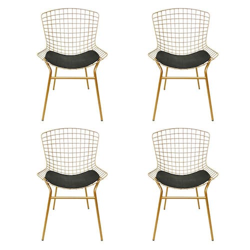 A Cadeira Bertoia Tubular é um produto de alta qualidade e possui um design clássico que certamente será o destaque da sua cozinha ou área gourmet. Com uma estrutura em pintura eletrostática epóxi cor dourado fosco, assento em e.v.a revestido com material sintético cor preto e concha fabricada em ferro maciço, essa cadeira é resistente e durável. Além disso, seus pés são produzidos em tubo 5/8" reforçado, garantindo ainda mais estabilidade e segurança para seus usuários.