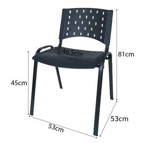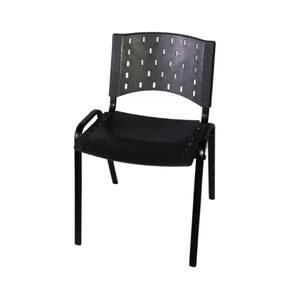 A cadeira feita de plástico com estrutura de ferro combina a leveza do material plástico com a resistência da base metálica. Seu assento e encosto são moldados de forma a garantir conforto e facilitar a limpeza. Seu design é ergonômico,