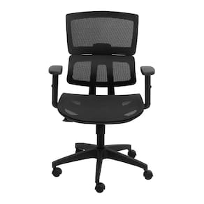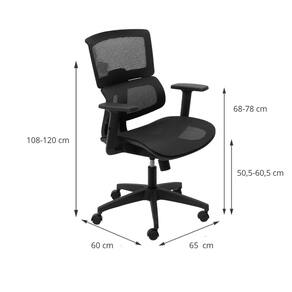 Cadeira Genebra com assento em tela e encosto em tela. Espaldar flexível e base giratória preta com relax.