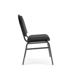 Cadeira de auditório com espaldar baixo com assento e encosto estruturado em madeira MDP BP e estofado com espuma laminada com densidade D28. Revestimento em sintético preto.