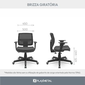 A Brizza Executiva é composta de espuma de ótima resiliência que se molda ao contorno corporal e oferece alto nível de conforto. O ajuste de altura em relação ao solo e a profundidade do assento atendem diferentes estaturas, resultando em alívio da pressão sanguínea corporal. Isso acarreta redução no cansaço decorrente da permanência na posição sentado Tipo de Encosto: Regulável Escala de Brilho: Fosco Produto Montado: Sim Almofada do assento: Fixa Acabamento da Estrutura: Polipropileno Altura do assento até o chão: 55.0000 Ambiente Principal: Escritório Apoio para Braços Estofado: Não Braço com Ajuste de Altura: Sim codigo_ean: 7908308739758 Complexidade da Montagem: Baixa: pode ser montado por uma pessoa sozinha Cor: Preto Cor da Base: Preto Cor do Produto: Preto Dobrável: Não Empilhável: Não Enchimento do Assento: Espuma D-55 Encosto Reclinável: Sim Estrutura do Encosto: Plástica Giratória: Sim Itens Inclusos: 1 Cadeira com Manual de montagem Linha ou Coleção: Brizza Manual de Especificação Técnica: https://product-hub-prd.madeiramadeira.com.br/827796/documents/dfd10fc3-def8-4bd1-85aa-e1783888a25det13cadeirabrizzaexecutiva.pdf Manual de Montagem e Instalação: https://product-hub-prd.madeiramadeira.com.br/827796/documents/478e4023-cf82-40e7-a9ac-e637f257cdf5rizzamanualcompletodigital.pdf Material da Base: Metal Necessita Montagem: Sim Origem do Produto: Nacional Peso: 18,03 kg Possui Apoio para Braços: Sim Possui Apoio Para os Pés: Não Possui LED: Não Possui Rodízio: Sim Quantidade de Itens: 1 Recomendações de Uso, Manutenção e Limpeza: Para garantir a conservação e prolongar a vida útil do produto, sugere-se adotar os seguintes procedimentos: - fazer limpeza do produto com frequência com produtos adequados (esponjas umedecidas com sabão neutro removendo excesso com pano suave, não utilizar produtos químicos derivados do petróleo). - nunca utilizar solventes ou detergentes abrasivos podem danificar o produto ou riscar superfícies. Nunca utilizar esponjas de limpeza ásperas ou palhas de aço. Nunca mergulhar o produto em água ou lavar sob água corrente. Revestimento do Assento: Vinil Revestimento do Encosto: Tela Rodízio com Trava: Não Sistema de Montagem: Parafusos Suporta Até (kg): 110 kg Tipo de Assento: Regulável Ean: 7908308739758
