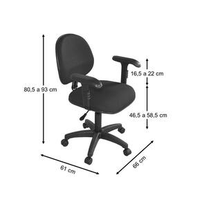 Assento e encosto injetado e anatômico e tapeçado em tecido J. Serrano. Com tratamento anti-corrosivo e Pintura EPOXI. Base e Braço na cor preta