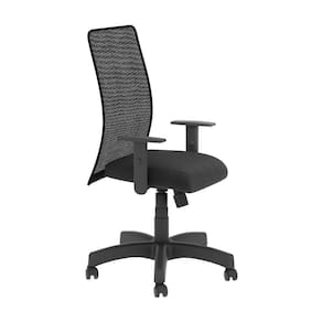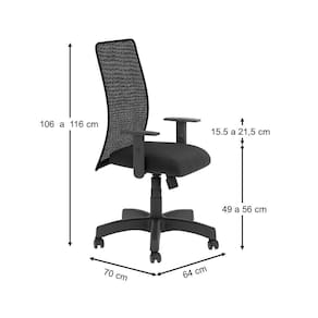 Base giratória cromada com relax e regulagem de altura com sistema a gás. Assento em tecido Space e encostos em tela super resistente preta Base e braço cromados.
