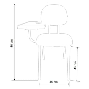Cadeira Universitária do tipo Secretária, com estrutura metálica e prancheta em madeira.