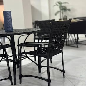 Sim, por ser em alumínio com pintura eletrostática e corda náutica com proteção UV, o produto pode ficar tranquilamente exposto ao tempo sem danos. Acabamento da Estrutura: Pintura Altura do assento até o chão: 45 cm Ambiente Principal: Jardim e Varanda Apoio para Braços Estofado: Não codigo_ean: 7900288189660 Cor: Preto Cor do Produto: Preto Escala de Brilho: Fosco Estrutura do Assento: Corda Náutica Estrutura do Encosto: Corda Náutica Giratória: Não Informações Complementares: Resistente a sol e chuva Itens Inclusos: 1 Cadeira Linha ou Coleção: Gana Manual de Montagem e Instalação: https://product-hub-prd.madeiramadeira.com.br/955583472/documents/a32afd0a-6190-4251-9ad3-560ee786f0232999810649117501055570008.pdf Marca: Qualitá Material da Base: Alumínio Necessita Montagem: Não Origem do Produto: Nacional Peso: 5 kg Possui Apoio Para os Pés: Não Possui Rodízio: Não Recomendações de Uso, Manutenção e Limpeza: Cuidados no Uso Evite arrastar a cadeira em pisos ásperos ou irregulares — isso pode desgastar os apoios e até riscar a pintura. Não sobrecarregue além do peso recomendado pelo fabricante. Use em locais cobertos, se possível. Apesar da pintura proteger contra intempéries, exposição constante ao sol e chuva pode desgastar a cor com o tempo. Evite impactos fortes, como quedas ou batidas com objetos duros (podem lascar a pintura).1. Frequência: Limpeza leve semanal e mais completa a cada 1 ou 2 meses (dependendo do uso e do ambiente). 2. Produtos ideais: Pano macio ou esponja não abrasiva Água morna com sabão neutro Secagem com pano seco e limpo 3. Passo a passo: Retire o pó com um pano seco. Molhe um pano/esponja em água com sabão neutro e passe suavemente. Enxágue com pano úmido só com água. Seque com pano seco imediatamente (pra evitar manchas d’água). ?? O que não fazer: Nada de palha de aço, escova dura, saponáceos ou produtos ácidos (tipo veja multiuso, álcool direto ou desengordurantes fortes Resistente à Chuva: Sim Suporta Até (kg): 140 kg Tipo de Assento: Fixo Tipo de Encosto: Fixo