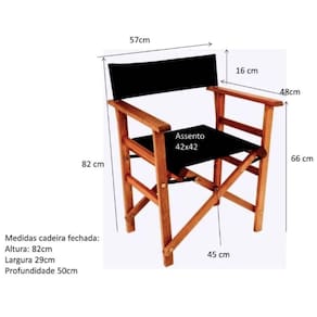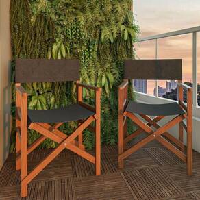 Cadeira Diretor Magnífica cadeira em estilo Diretor em madeira maciça e tecido em aquablock preto, exclusiva e dobrável. Perfeita para ambiente externo e interno. Conforto, durabilidade, modernidade e beleza em uma peça só. Seu ambiente merece o melhor! Acabamento da Estrutura: Stain Almofada do assento: Removível Altura do assento até o chão: 45 cm Ambiente Principal: Jardim e Varanda Apoio para Braços Estofado: Não Cor: Madeira Cor do Produto: Madeira Escala de Brilho: Fosco Estrutura do Assento: Tecido Aquablock Estrutura do Encosto: Tecido Aquablock Preto Giratória: Não Informações Complementares: O produto vai pronto para uso Itens Inclusos: 1 Cadeira Material da Base: Madeira Necessita Montagem: Não Origem do Produto: Nacional Peso: 8 kg Possui Apoio Para os Pés: Não Possui Rodízio: Não Recomendações de Uso, Manutenção e Limpeza: De tempos em tempos, lavar e aplicar nova demão de Stein ou outro hidratante para madeira. Resistente à Chuva: Sim Revestimento do Assento: Aquablock Preto Revestimento do Encosto: Tecido Aquablock Preto Suporta Até (kg): 120 kg Tipo de Assento: Fixo Tipo de Encosto: Fixo Tipo de Madeira Maciça: Eucalipto