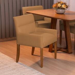 Características Técnicas Estrutura: Madeira reflorestada de eucalipto com reforço em MDF e OSB Assento: Espuma D-28 HR sobre base de madeira conforto e firmeza Encosto e Braça: Espuma D-23 sobre percintas elásticas de nylon ergonomia e apoio na medida Revestimento: Corano visual sofisticado e fácil de manter Pés: Madeira maciça envernizada, modelo fixo Altura dos braços com mesas de jantar padrão praticidade no uso diário Medidas Altura Total: 83 cm Largura: 56 cm Profundidade: 56 cm Peso: 15 kg Altura do Assento ao Chão: 49 cm Largura do Assento: 45 cm Profundidade do Assento: 47 cm Altura dos Pés: 35 cm Altura do Encosto: 36 cm Altura do Braço ao Assento: 11 cm Diferenciais Encosto de braço mais baixo: encaixa perfeitamente sob a mesa Design simples, versátil e elegante Materiais de alta qualidade para maior durabilidade Já vem montada é só desembalar e usar Suporta até 110 kg Cuidados Limpeza com pano levemente umedecido, seguido de pano seco Evitar exposição solar direta por muitas horas Não usar produtos abrasivos, evitar produtos com corantes ou escovas rígidas Garantia3 meses contra de fabricação