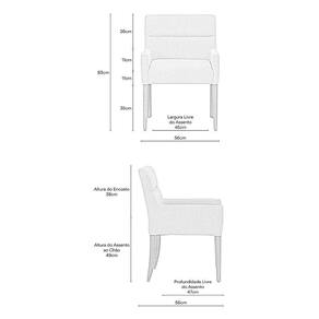Características Técnicas Estrutura: Madeira reflorestada de eucalipto com reforço em MDF e OSB Assento: Espuma D-28 HR sobre base de madeira conforto e firmeza Encosto e Braça: Espuma D-23 sobre percintas elásticas de nylon ergonomia e apoio na medida Revestimento: Corano visual sofisticado e fácil de manter Pés: Madeira maciça envernizada, modelo fixo Altura dos braços com mesas de jantar padrão praticidade no uso diário Medidas Altura Total: 83 cm Largura: 56 cm Profundidade: 56 cm Peso: 15 kg Altura do Assento ao Chão: 49 cm Largura do Assento: 45 cm Profundidade do Assento: 47 cm Altura dos Pés: 35 cm Altura do Encosto: 36 cm Altura do Braço ao Assento: 11 cm Diferenciais Encosto de braço mais baixo: encaixa perfeitamente sob a mesa Design simples, versátil e elegante Materiais de alta qualidade para maior durabilidade Já vem montada é só desembalar e usar Suporta até 110 kg Cuidados Limpeza com pano levemente umedecido, seguido de pano seco Evitar exposição solar direta por muitas horas Não usar produtos abrasivos, evitar produtos com corantes ou escovas rígidas Garantia3 meses contra de fabricação
