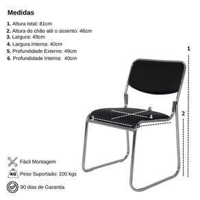 Cadeira De Escritório Recepção Auditório Interlocutor Base Fixa Dakkar Dubai Preto