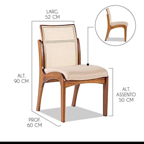 Ei, você aí! Está procurando por uma cadeira que seja a estrela do seu espaço? Então, você precisa conhecer a Cadeira Lisboa! Com um design moderno, ela é capaz de deixar qualquer ambiente mais sofisticado e confortável. Além disso é uma cadeira versátil que pode combinar com diversos ambientes da sua casa, dando um toque único. A Cadeira Lisboa é produzida com madeira maciça sustentável proveniente de reflorestamento com alta qualidade e resistência. Então não perca mais tempo e venha conhecer nosso catálogo e deixar sua casa mais completa e cheia de estilo. CARACTERÍSTICAS TÉCNICAS: - Produzido em Madeira Maciça Sustentável - Acabamento em Verniz na cor Imbuia - Encosto com Revestimento em Rattan com Fibra de Algodão Sextavada na cor Bege - Assento Estofado Preenchido com Espuma D23 - Revestimento do Assento em Linho na cor Bege M58 - Cadeira Entregue Montada INFORMAÇÕES TÉCNICAS: Altura Total: 90 cm Altura Chão até Assento: 50 cm Altura Encosto: 44 cm Largura Total: 52 cm Largura do Assento: 48 cm Profundidade Total: 60 cm Profundidade Assento: 56 cm Peso: 8 kg INFORMAÇÕES ADICIONAIS: Garantia para defeitos de fabricação conforme Código de Defesa do Consumidor. - Produto em madeira maciça natural, podendo ocorrer variação no tom ou cor da madeira. - As imagens ambientadas são meramente ilustrativas e podem apresentar itens que não compõe o produto, as cores do produto podem variar de acordo com o monitor, a iluminação do ambiente ou sua percepção visual. - Limpeza: Deve ser feita com pano macio e seco ou levemente umedecido com água e sabão neutro. Não devem ser utilizados abrasivos.