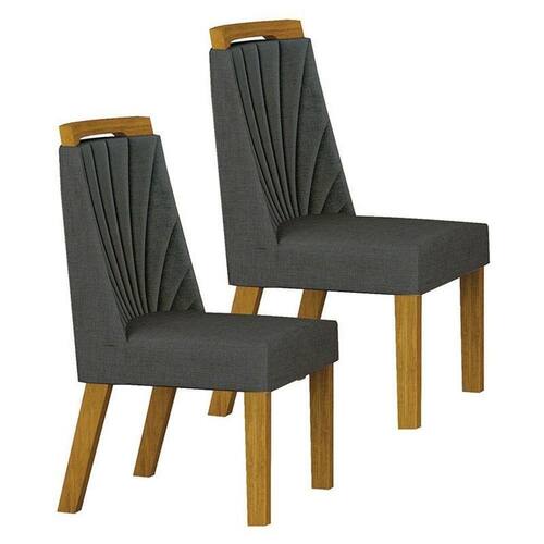 Cadeira para Mesa de Jantar Liz MDF Kit 2 Peças Freijó Linho Chumbo Leifer Móveis