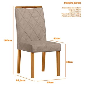 Cadeira para Mesa de jantar Sarah Kit 2 Peças Ype Camurça Marrom – New Ceval