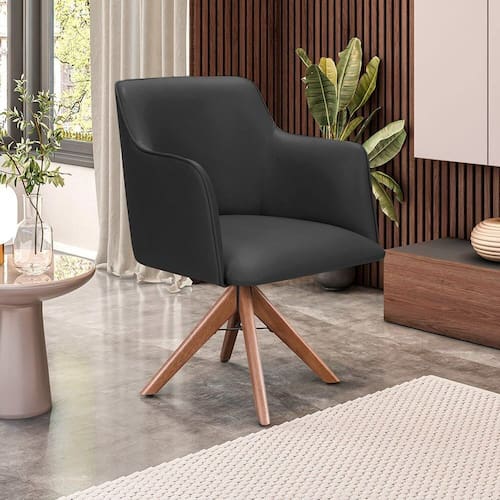 PRODUTO FABRICADO COM COMPENSADO PRENSADO E REVESTIDO COM SINTÉTICO. NO ASSENTO, INSTALAMOS A ESPUMA CONTÍNUA D28 SUPERSOFT. O ENCOSTO POSSUI ESPUMA D26 SUPERSOFT. POSSUI BASE GIRATÓRIA DE AÇO COM PÉS DE MADEIRA MACIÇA. Acompanha Almofadas extras: Não Acompanha Puff: Não Almofada do assento: Fixa Almofada do encosto: Fixa Altura do assento até o chão: 46 cm Altura do Encosto: 39 cm Ambiente Principal: Sala de Estar codigo_ean: 7900288091413 Cor: Preto Cor do Produto: Preto Design Assinado: Não Enchimento do Assento: Espuma D-28 Enchimento do Braço: Espuma D-28 Enchimento do Encosto: Espuma D-26 Encosto para a Cabeça: Não Estampado: Não Extensível: Não Firmeza do Assento: Médio Informações Complementares: MADEIRA PRENSADA 15MM Itens Inclusos: 1 POLTRONA Linha ou Coleção: Marquesa Marca: Estofart Material do Braço: Sintético Material dos Pés: MADEIRA MACIÇA Modelo de Poltrona: Giratório Necessita Montagem: Não Origem do Produto: Nacional Peso: 10 kg Possui Percintas Elásticas: Não Possui Pés: 04 Possui Rodízio: Não Recomendações de Uso, Manutenção e Limpeza: NÃO EXPOR AO SOL OU FONTE DE CALOR; NÃO UTILIZAR PRODUTOS DE LIMPEZA COMO DETERGENTE, ÁLCOOL, SOLVENTES, OU PRODUTOS QUÍMICOS; PARA A LIMPEZA DA CAPA/FORRO INTERNA, UTILIZAR PANO UMEDECIDO EM ÁGUA, SABÃO NEUTRO E ESCOVA DE CERDAS MACIAS, DEIXANDO SECAR A SOMBRA. PARA A LIMPEZA DA CAPA EXTERNA, UTILIZAR MÁQUINA DE LAVAR ROUPAS COM PROGRAMAÇÃO ADEQUADA; NÃO PROVOCAR TENSÕES DESPROPORCIONAIS NO ASSENTO OU BRAÇOS DO SOFÁ, CAUSADAS PRO QUEDAS OU PULOS; PRESERVAR O PRODUTO DE OBJETOS AQUECIDOS OU PONTIAGUDOS; MANTÊ-LO EM LOCAL AREJADO; TRANSPORTAR COM O MÁXIMO DE CAUTELA. Suporta Até (kg): 100 kg Tecido Predominante: Sintético Tipo de Assento: Fixo Tipo de Encosto: Fixo Tipo de Espuma do Assento: Espuma Convencional Tipo de Espuma do Encosto: Espuma Convencional Tipo de Poltrona: Decorativa
