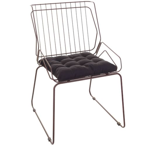 Cadeira Memphis decorativa com estilo industrial com estrutura em aço e pintura eletrostática com um confortável assento ideal para area externa e interna é uma cadeira moderna que trás harmonia a qualquer ambiente. Características Almofada do Assento Removível Marca Metaltru Tipo de Assento Fixo Suporta Até (kg) 90 kg Possui Rodízio Não Cor do Produto Aço Corten/Preto Estrutura do Assento Aço Estrutura do Encosto Aço Ambiente Principal Sala de Jantar Cor Predominante Marrom Itens Inclusos Itens Inclusos 1 Cadeira e manual de montagem