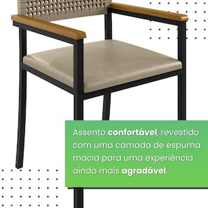 Seu assento acolhedor é ideal para longos períodos de uso, enquanto o encosto trançado garante durabilidade.