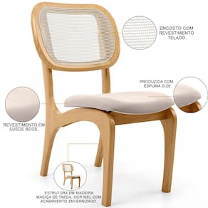 Procurando um modelo de cadeira de jantar que fuja do tradicional, mas que ao mesmo tempo combine elegância e modernidade?! Então, prepare-se para descobrir a Cadeira Para Sala de Jantar Cozinha Estofada e Tela Mariah L02 Suede Bege, da Lyam Decor. Com design orgânico expresso nas linhas curvas, essa cadeira estofada, além de cumprir perfeitamente com sua funcionalidade, ao garantir conforto e bem-estar durante as refeições, vai também agregar charme e sofisticação à decoração seja da sua sala de jantar, da cozinha e até mesmo da sua área gourmet, já que detalhes como estrutura de Taeda maciça e encosto com tela harmonizam perfeitamente entre si, criando uma cadeira de madeira incrivelmente linda.