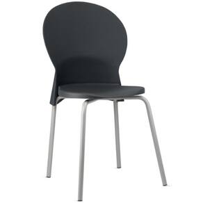 Características: Material do encosto e assento injetado em Polipropileno (PP) 100% reciclável, na tonalidade Preto. Pés em tubo de aço carbono de secção circular e acabamento com pintura epóxi, na tonalidade Cinza. Assento com design semicircular, no conceito mocho. Encosto com design anatômico para a melhor apoio da lombar. Pés com ponteiras injetadas em polipropileno para a prevenção de riscos no piso. Peso máximo suportado 120 kg. Estrutura fixa não empilhável. Produto 100% Nacional.