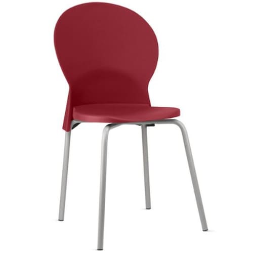 Material do encosto e assento injetado em Polipropileno (PP) 100% reciclável, na tonalidade Vermelho.