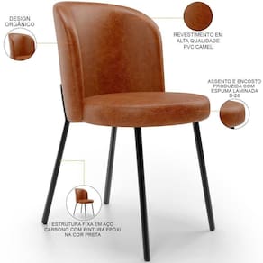 Com design contemporâneo, essa cadeira estilo industrial se destaca não somente por ser uma peça de mobiliário versátil, já que pode ser aproveitada na cozinha, sala de jantar, área gourmet e até mesmo salão de festas; como também recebe atenção pelo conforto que oferece, graças ao assento e encosto revestidos com espuma laminada D-26, de modo que você desfrute de momentos incríveis durante as refeições. Já os pés em aço carbono conferem resistência e durabilidade, garantindo que você desfrute dessa cadeira por muito tempo.