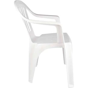 Uma Cadeira fabricada em plástico polipropileno com material 100% virgem e proteção contra raios UV, garantindo durabilidade e alta resistência com suporte de peso de até 182 Kg.
