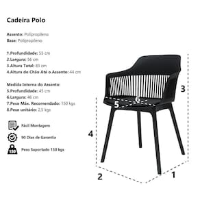 Medida interna do Assento Profundidade Interna do Assento: 45 cm Largura Interna do Assento: 46 cm Peso Máx. Recomendado: 150 kgs Peso unitário: 5 kgs