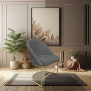 A base metálica em dourado confere à cadeira um aspecto industrial moderno, proporcionando um contraste encantador com o tecido em suede. Essa mistura de materiais agrega um ar contemporâneo e luxuoso ao ambiente, além de assegurar estabilidade e durabilidade à peça. O acabamento cuidadoso realça ainda mais a beleza e a qualidade do produto.