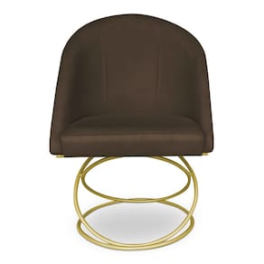 Cadeira Poltrona de Jantar Bela Suede Marrom Base Metálica Luxo Dourado - Pallazio