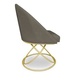 A base metálica em dourado confere à cadeira um aspecto industrial moderno, proporcionando um contraste encantador com o tecido em Suede. Essa mistura de materiais agrega um ar contemporâneo e luxuoso ao ambiente, além de assegurar estabilidade e durabilidade à peça. O acabamento cuidadoso realça ainda mais a beleza e a qualidade do produto.