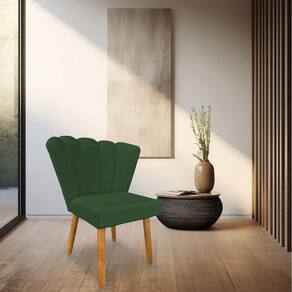 Cadeira Poltrona Flor Veludo Pés Palito Castanho - Pallazio - Verde