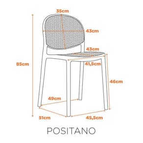 A Cadeira Positano - Preta tem uma alta elegância em seu design. Seu encosto e assento possuem a textura Rattan. Porém, por sem toda em polipropileno, ela garante grande resistência. Seu estilo moderno e elegante, faz com que ela se adeque a ambientes internos e externos.