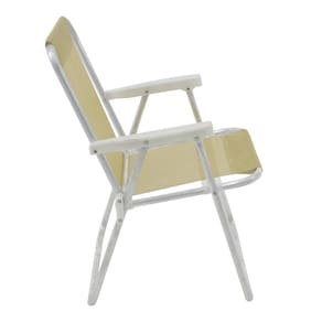 Cadeira Praia Alta Alumínio 110Kg Lazy Bel - Bege Acadeira Praia Alta Alumínio e Sannet Suporta 110Kg Lazy Bel é um produto nacional, fabricado no sul do Brasil. Confeccionada em Sannet material 100% Poliéster com revestimento PVC. Super resistente e fácil de manter. A estrutura totalmente em alumínio proporciona leveza e facilidade de transporte além suportar até 110Kg. Medidas do produto montado: CxLxA 51x53x72 cm Imagens meramente ilustrativas. As tonalidades de cores podem variar de acordo com o monitor, celular ou até mesmo percepção. Quantidade por embalagem 1 unidade de 90 dias contra defeitos de fabricação Marca: Não Informado