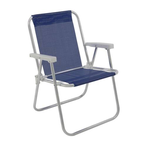 Cadeira Praia Alta Alumínio 110Kg Lazy Bel - Marinho