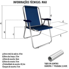 Medidas da cadeira aberta (cm): 66 x 60,8 x 87 (C x L x A)